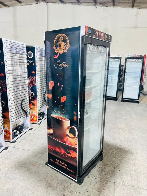 خچال ویترینی ایستاده عرض 70 سانت طرح کافه coffee تاج و ارتفاع کوتاه