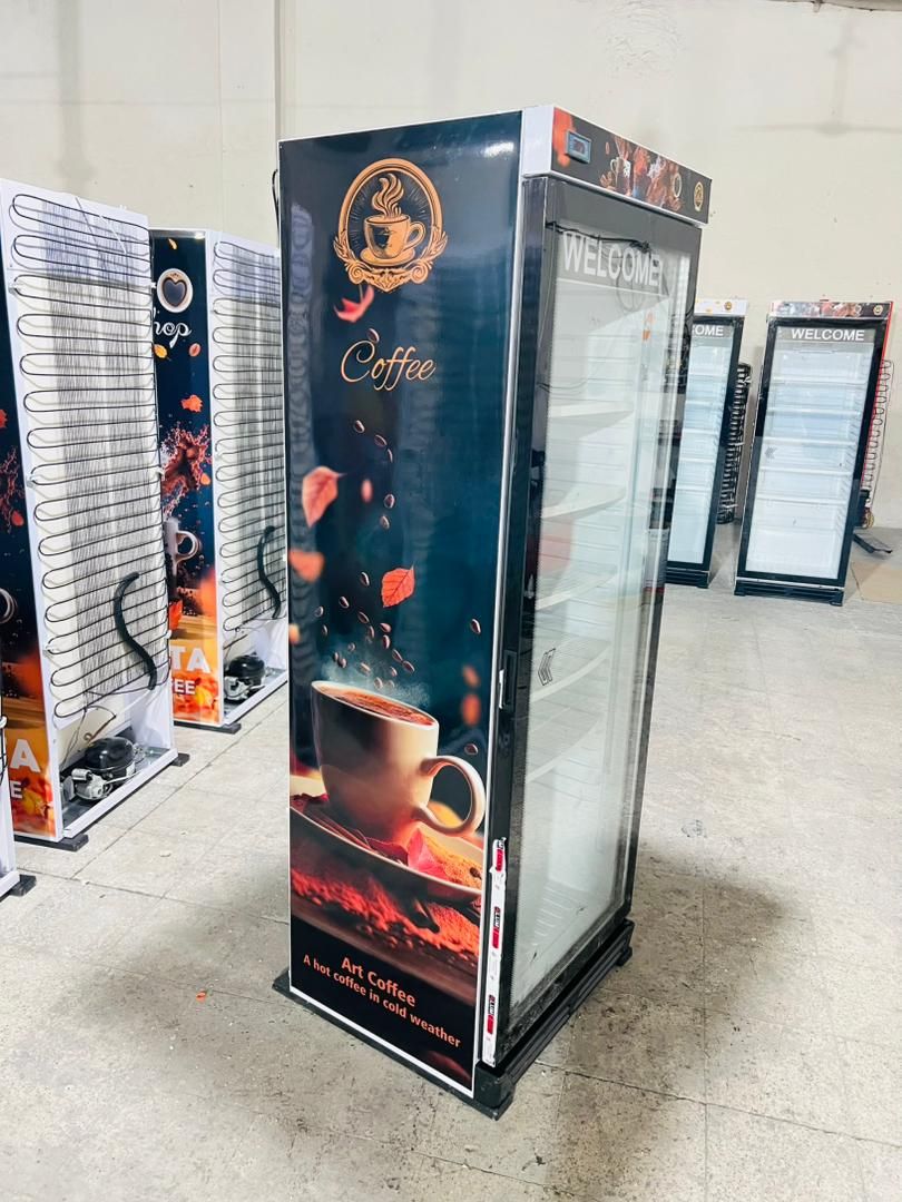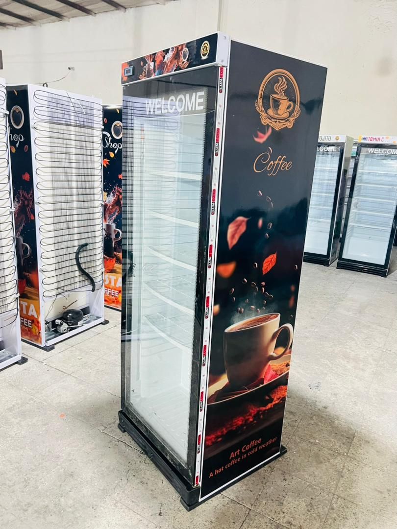 خچال ویترینی ایستاده عرض 70 سانت طرح کافه coffee تاج و ارتفاع کوتاه